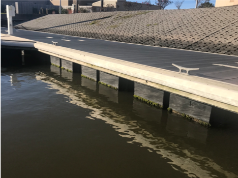 Image of the floating docs on Galveston’s campus. Alitta succinea lives in the algal mat fouling communities that grow on the black floats.
